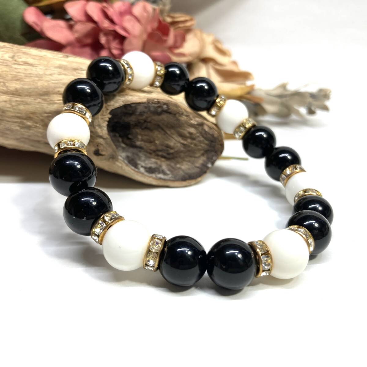> モリオン&ホワイトオニキス パワーストーン ブレスレット 天然石ブレス (ゴールド) 10mm メンズ・レディース 厄除け 人間関係 ☆