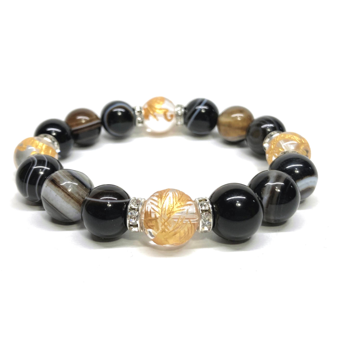 - 四神獣金彫水晶×チベットアゲート(天眼石) 12mm パワーストーン ブレスレット天然石 青龍 白虎 玄武 朱雀 運気上昇 お守り 四神獸 S