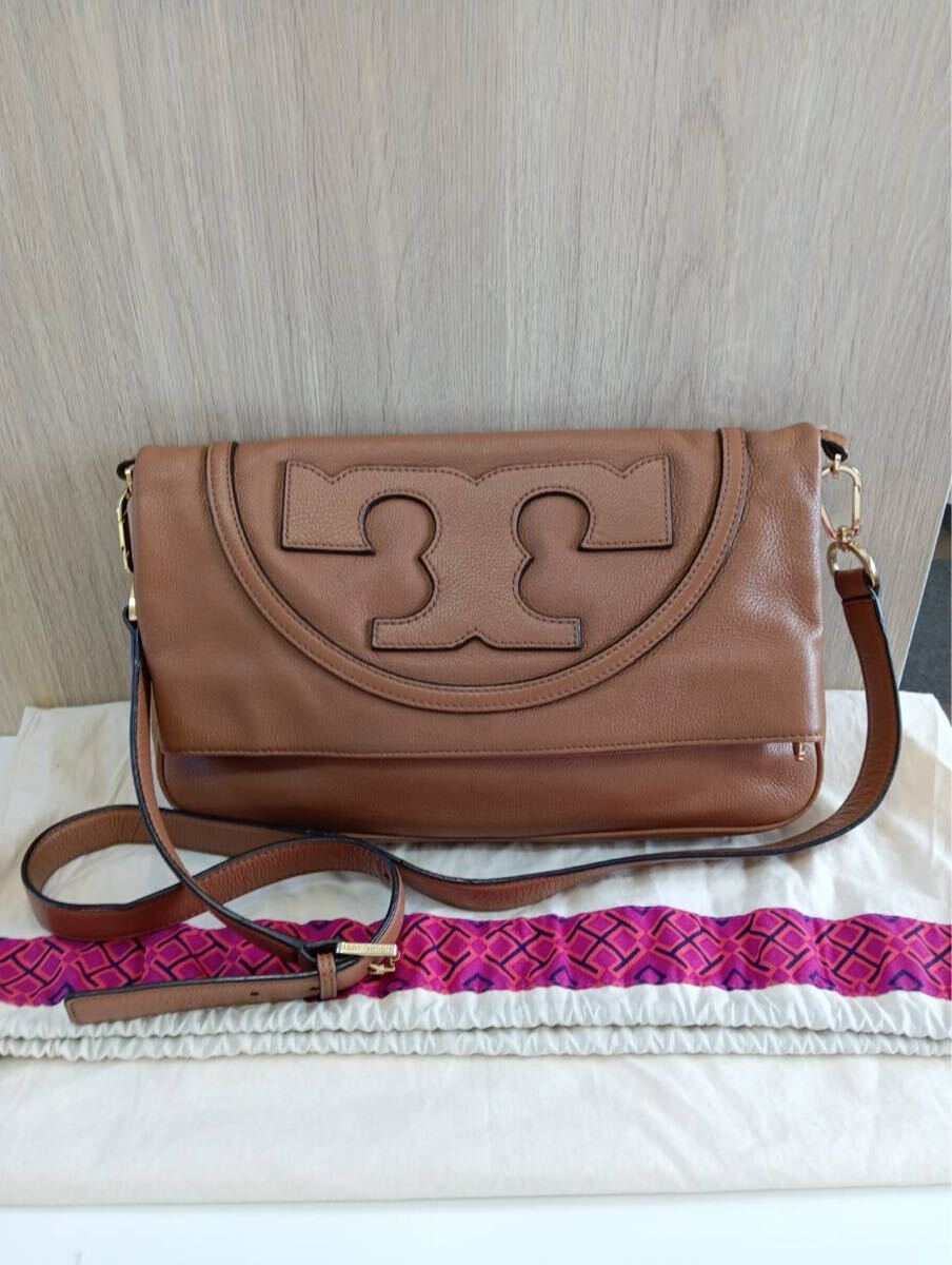 - 【中古品】トリーバーチ TORY BURCH 2way ショルダーバッグ クラッチ 斜め掛け レザー ロゴ ブラウン 現状品