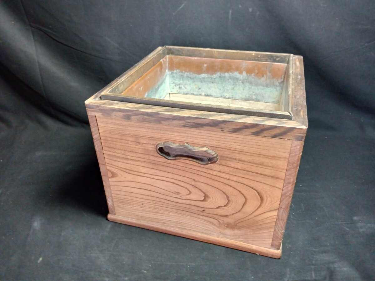 - 火鉢 欅 黒柿 角火鉢 五徳 囲炉裏 茶道具 木製 置炉 古民具 手焙り 古道具 古民家 火箸 灰ならし 鉄瓶 レトロ
