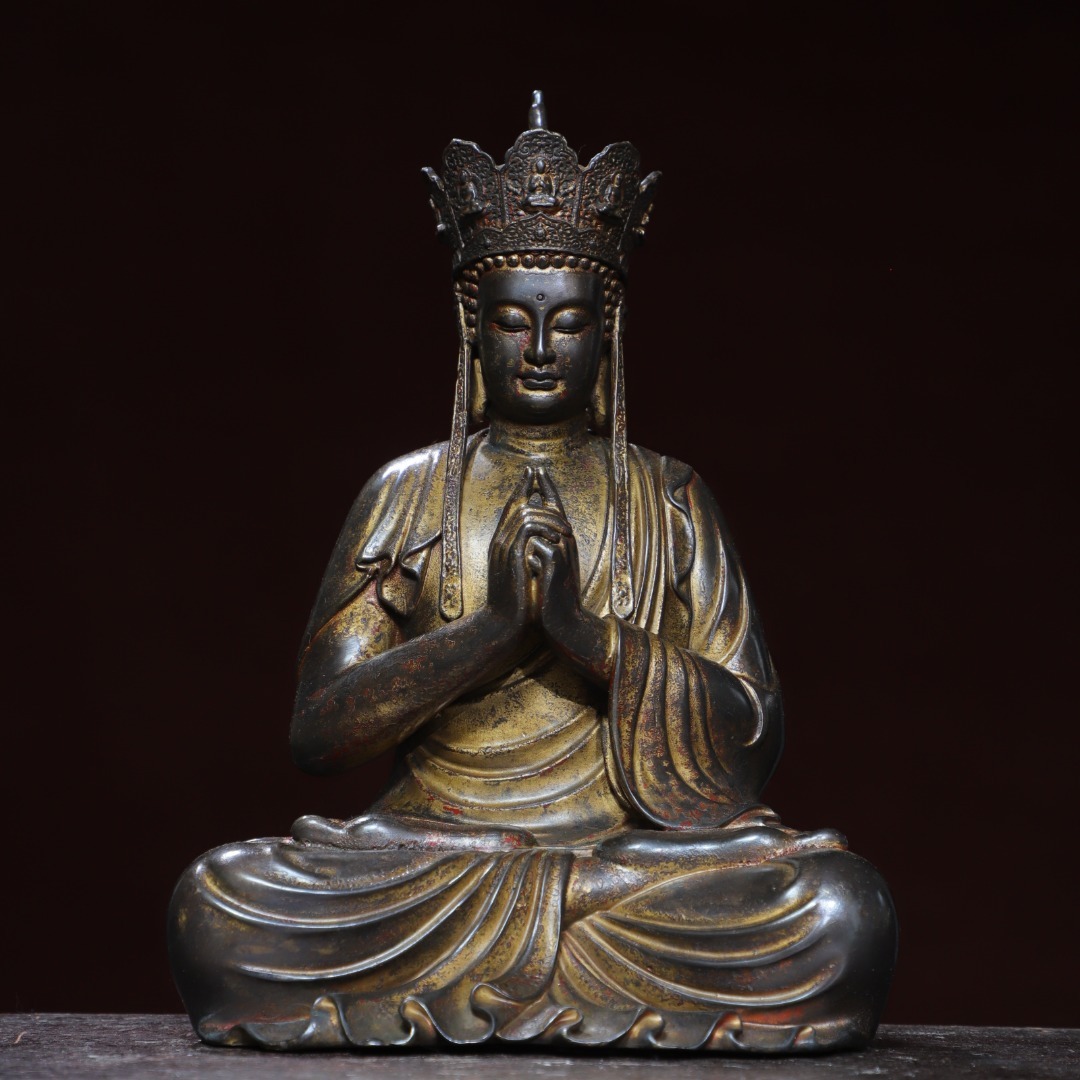 - 『館蔵珍品 銅製 泥金 地藏王菩薩像 置物 賞物』稀少珍蔵品 古賞物 貴重物品 収蔵品 中国古美術 時代物 古董品