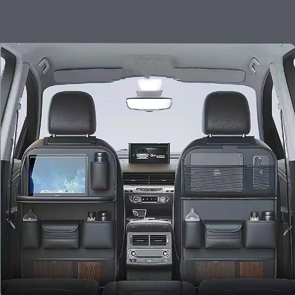 - 後部座席 収納 シートバックポケット 車 テーブル ティッシュ シートカバー 車内 レザー 後ろ カバー 子供 ドリンクホルダー タブレット