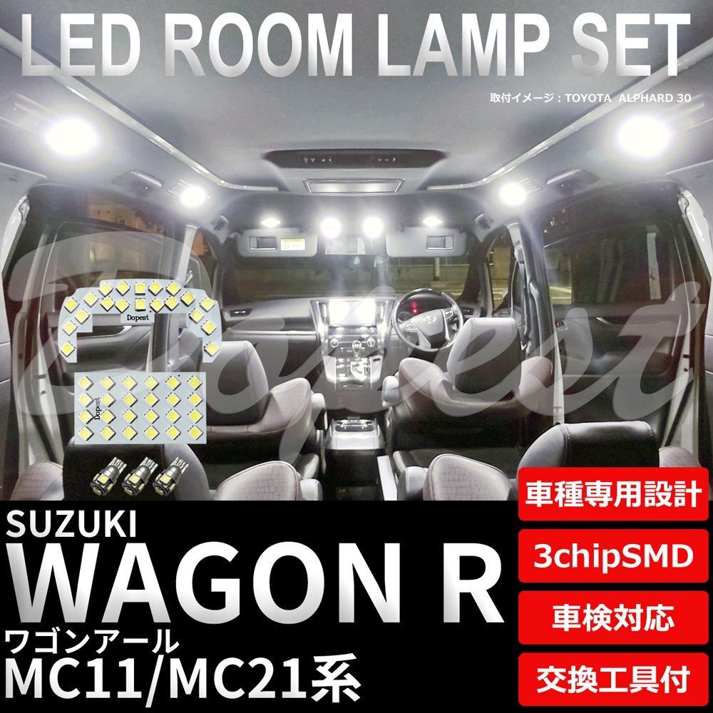 > Dopest スズキ ワゴンR MC11/MC21系 LEDルームランプセット フルセット WAGON アール ライト 球 室内灯 ホワイト/白