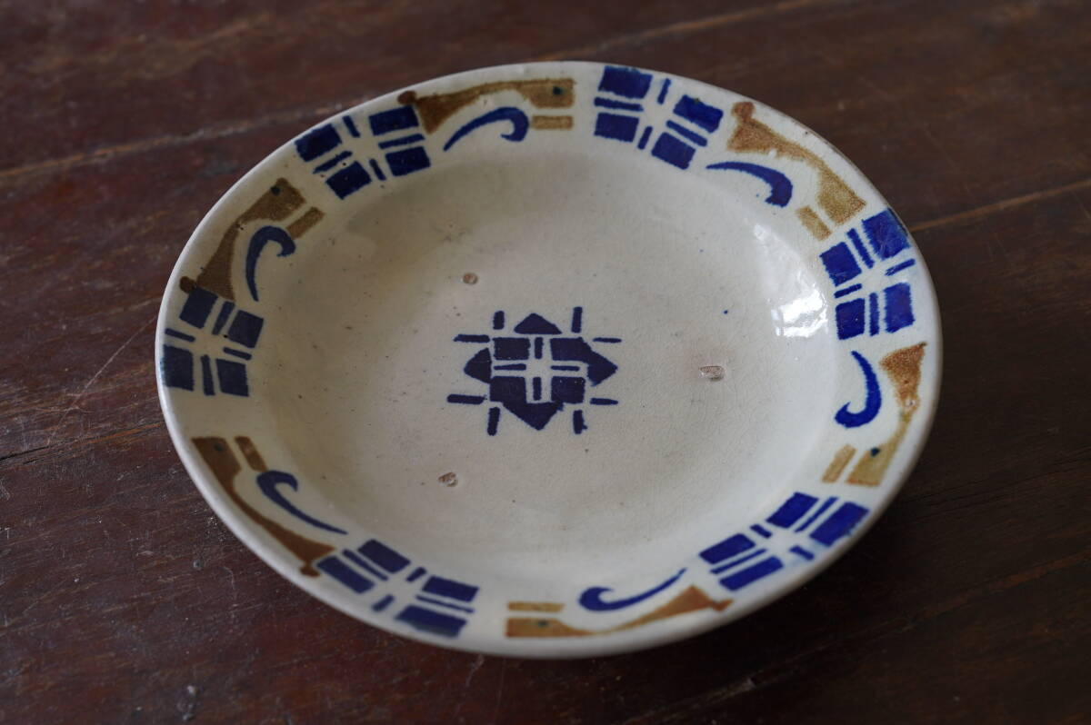 - ベトナム 器 ヴィンテージ アンティーク ソンベ焼 茶碗 プレート 皿 フランス 陶器 手描き 染付け 民藝 小皿 ④