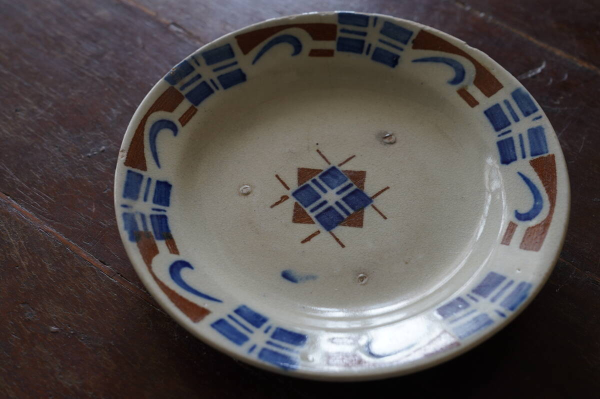 - ベトナム 器 ヴィンテージ アンティーク ソンベ焼 茶碗 プレート 皿 フランス 陶器 手描き 染付け 民藝 小皿 ③