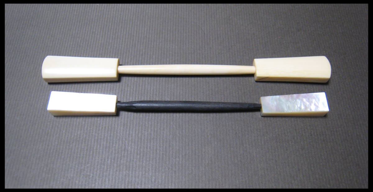 - アイボリー色 貝製 シェル 両天簪 笄 2点 日本髪 和装 髪飾り アンティーク かんざし