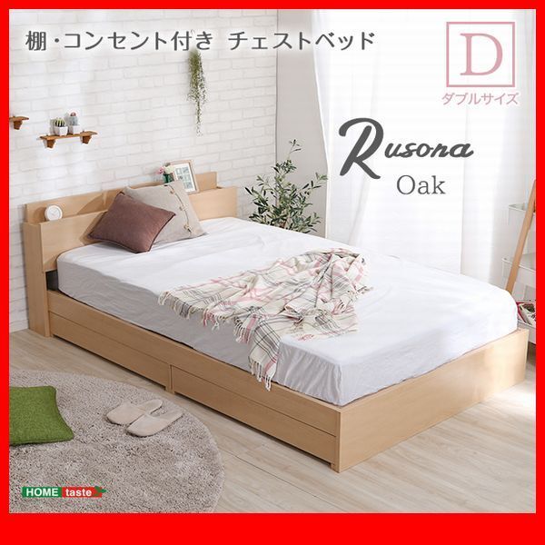 > シングルベッド★宮棚・2口コンセント付きチェストベッド ダブル フレームのみ/収納 引き出し2杯 抗菌・防臭機能/オーク/zz