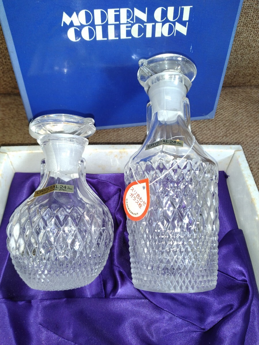 - K432【未使用】 カメイガラス スリ合わせガラス栓 クリスタル調味入れ 醤油差し クリスタルガラス