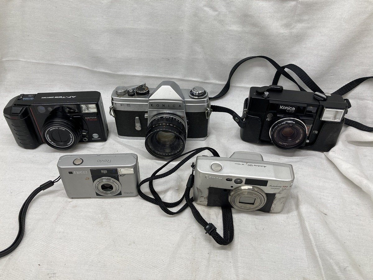 > ジャンク メーカー混在 フィルムカメラ 5点まとめて コニカ・キャノン・ミノルタ 動作未確認 状態難あり[22500