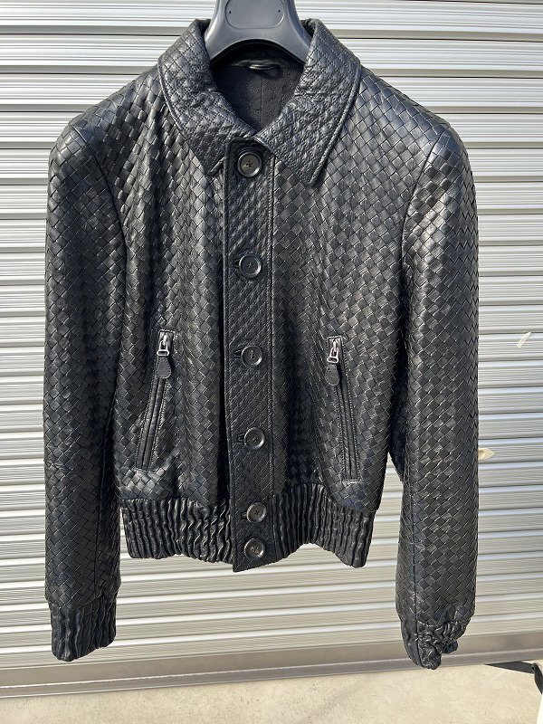 > ★ボッテガヴェネタ★レザーボンバージャケット サイズ44 ブラック BOTTEGA VENETA 希少 ボッテガ・ヴェネタ イントレチャート #112b35