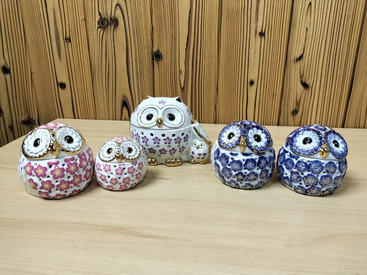- ★陶器製 フクロウ 梟 香炉 置物 まとめて5点★