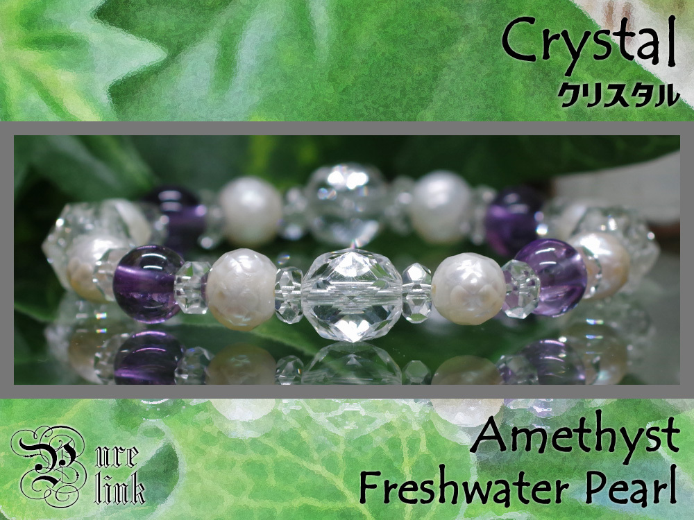 - ?輝く『水晶』スターカットと『パール』『アメジスト』五芒星ブレスレット?