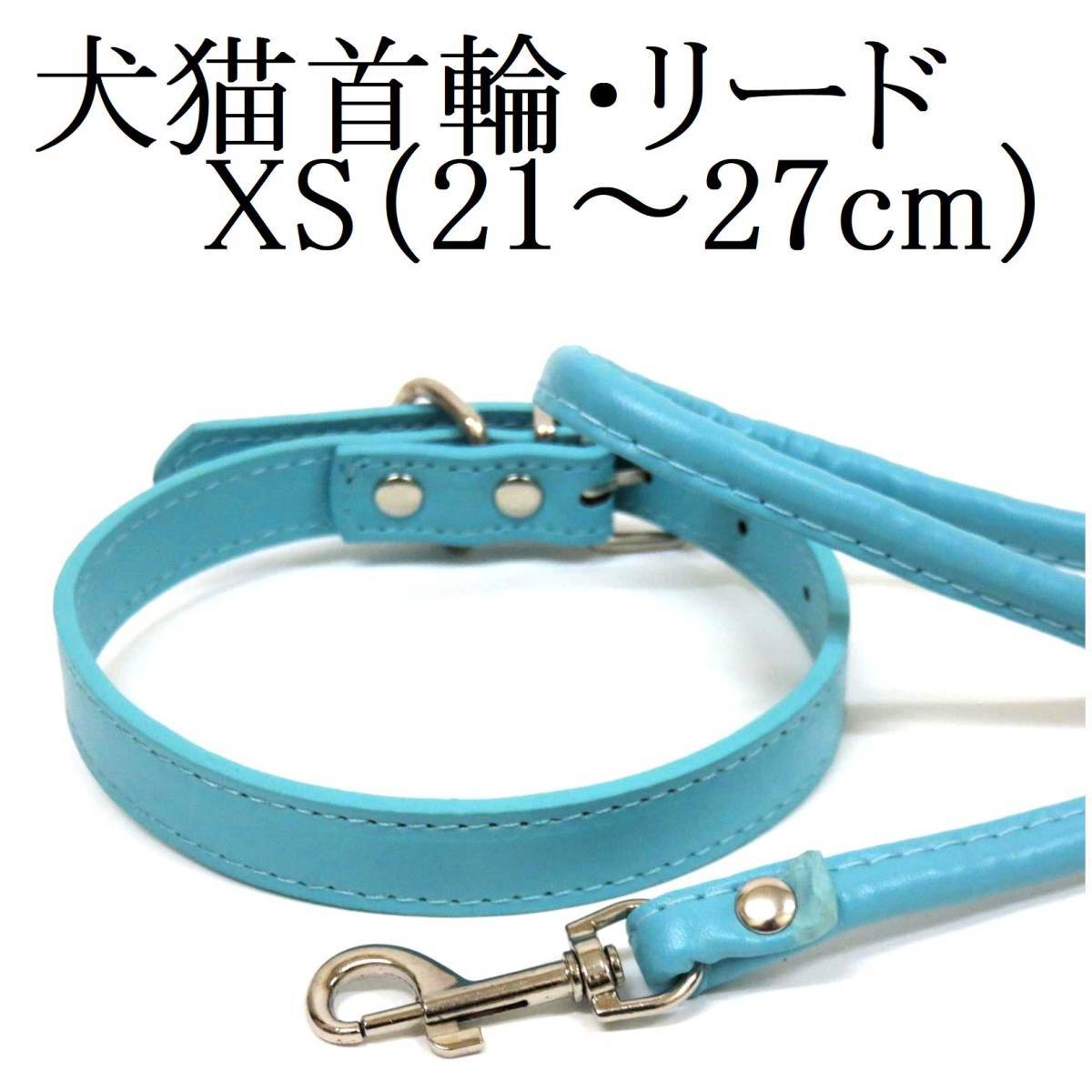 > 水色 XS 猫 犬 小型犬 首輪&リード セット 首回り21~27cm前後 幅1.3cm リード120cm PUレザー シンプル カラー 青 ブルー ペット用品 散歩