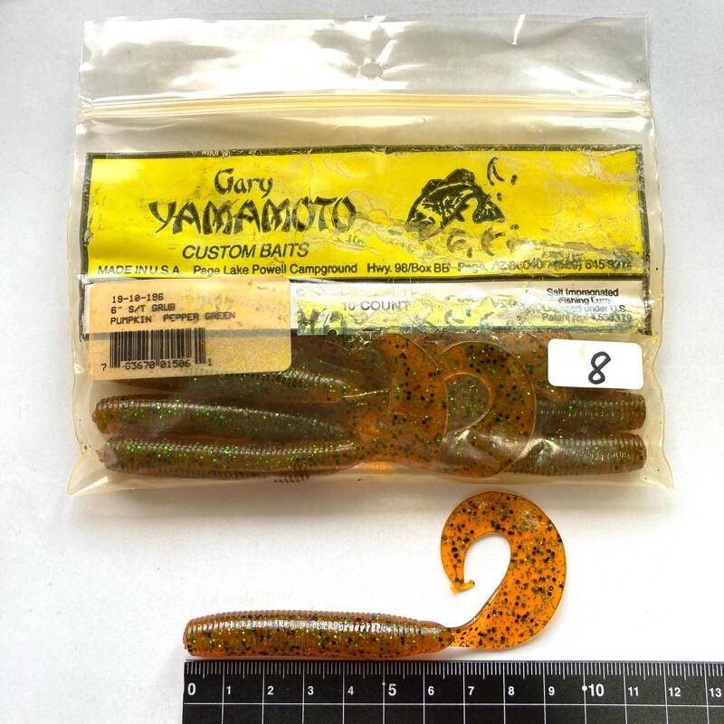 > 815408 ゲーリーヤマモト 6インチ ジャンボグラブ 8本 GARY YAMAMOTO シングルテール #196 パンプキン/グリーン&ブラックFLK オールド品