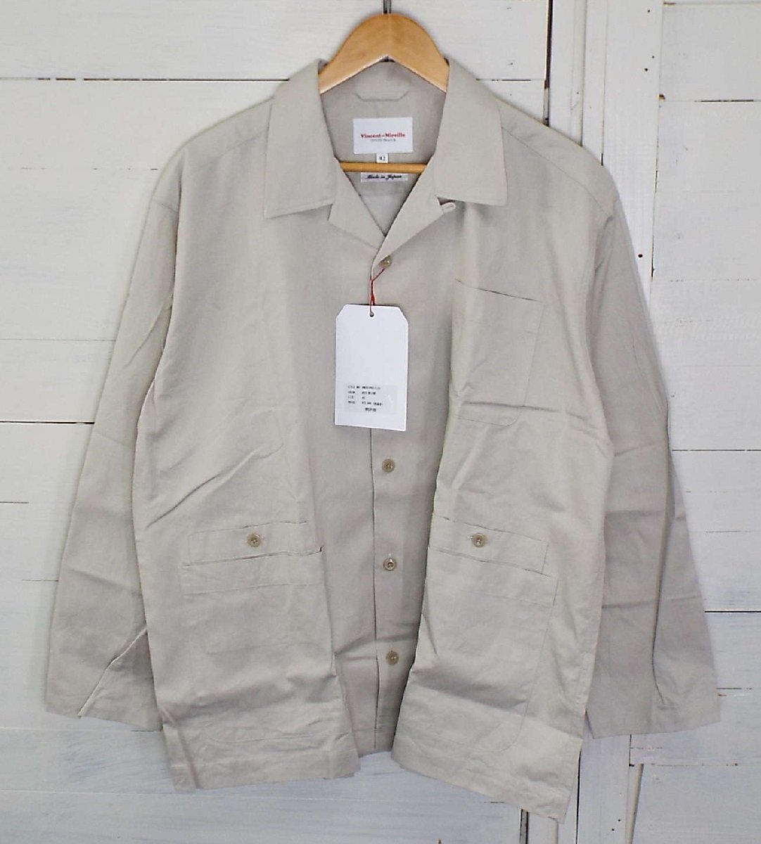 - T3335〇Vincent et Mireille(バンソンエミレイユ/ヴァンソンエミレイユ)シャツジャケット 長袖 シャツ サイズ42 ベージュ タグ付
