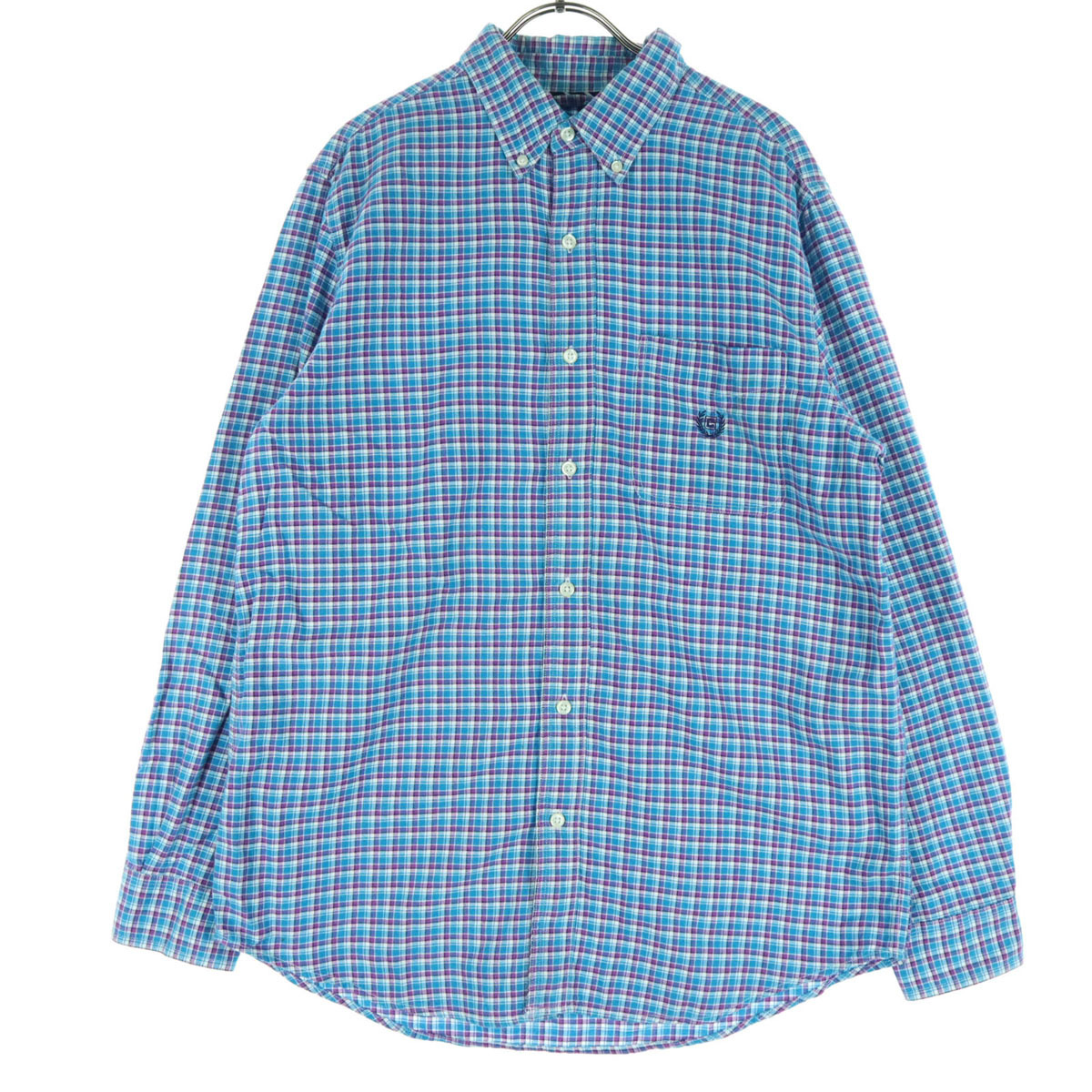 CHAPS チャップス チェック柄 長袖 コットンシャツ M ブルー メンズ