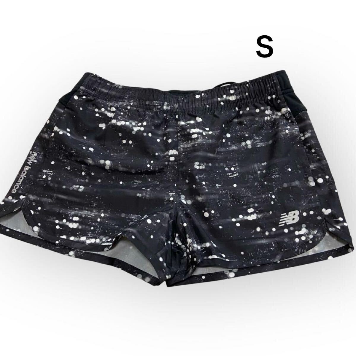 > new balance ニューバランス グラフィック ランニングショーツ レディースS ブラック黒 短パン トレーニングパンツ