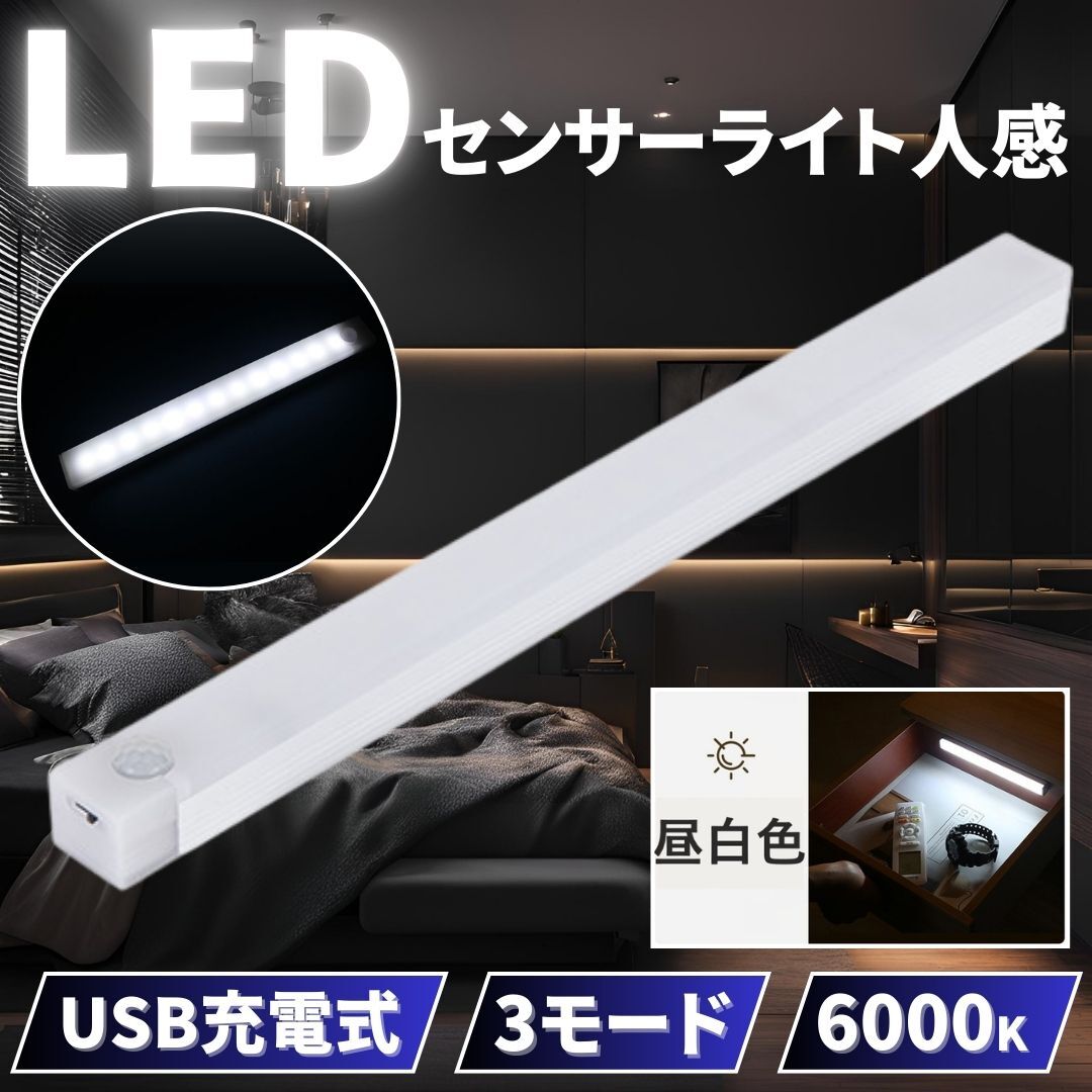 - センサーライト 人感 LED 室内 玄関 クローゼット 照明 USB充電 昼白色 ベッド 廊下 トイレ 屋根裏 ロフト 人体感知 配線不要 天井壁 20cm