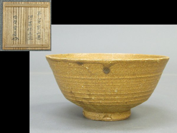 > 【心庵】平安 寶山/伊羅保 茶碗 共箱 共布 紫聖雪窓(小田雪窓)書付 茶道具 A306