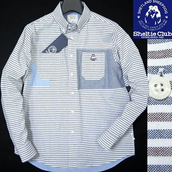 > 新品 シェルティークラブ ボーダー OX切替し BD シャツ L 茶 【SH1451111_19_L】 Sheltie Club 春夏 メンズ オックスフォード 長袖