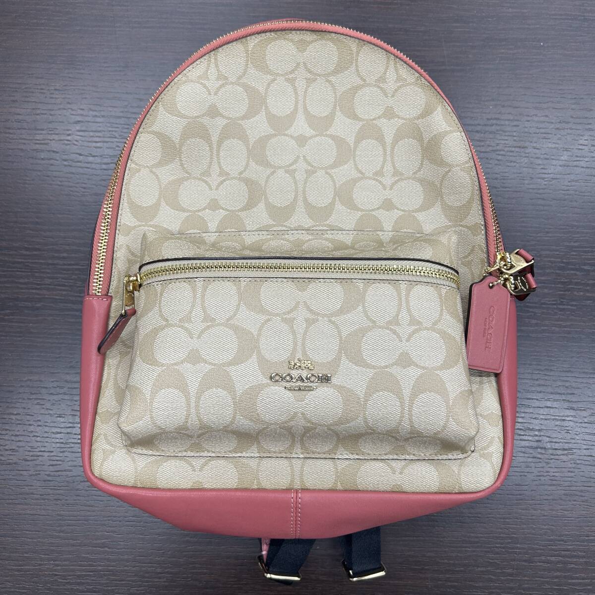 > ★☆COACH コーチ F32200 シグネチャー PVC×レザー リュックサック バックパック アイボリー系 ピンク #18500☆★