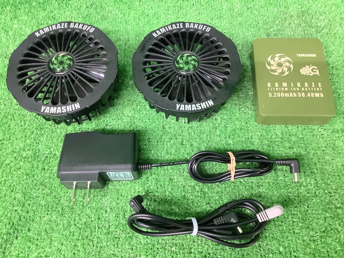 > 中古品 山真製鋸 YAMASHIN 5200mAh 神風専用バッテリー KBT-5200 + 充電ケーブル + ファンセット
