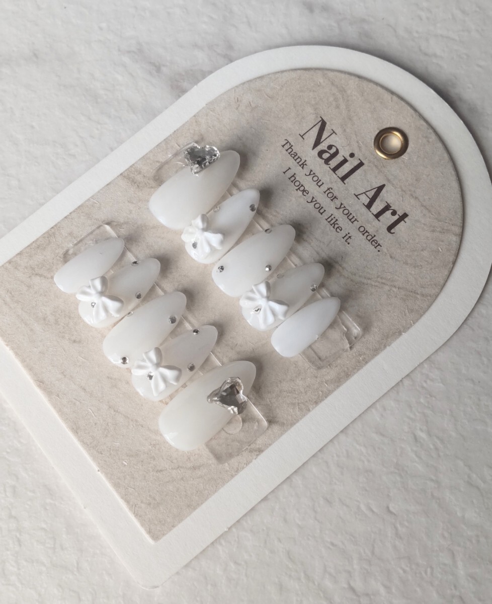 - ホワイトネイルチップ#ネイルチップ#ガーリー #スナ系 #韓国#マグネット#ワンホン#キラキラ