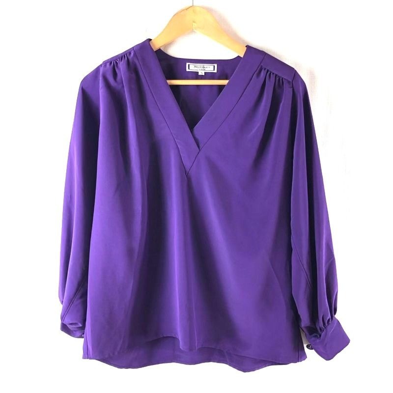 - イヴサンローラン Yves Saint Laurent カットソー 長袖 Vネック 袖ボタン 肩パット 紫 Sサイズ 2025090100216