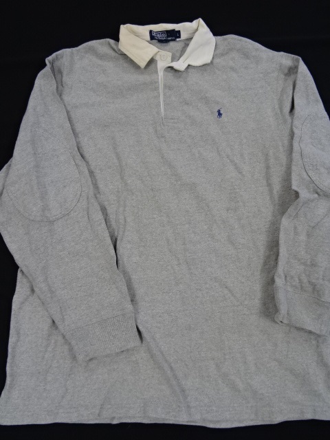 > POLO by RALPH LAUREN ポロラルフローレン ポロシャツ ラガーシャツ 長袖 ボーダー グレー メンズトップス 春夏秋 Lサイズ