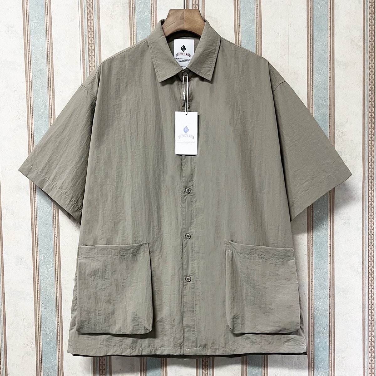 - 最高級・半袖 シャツ 定価2万 FRANKLIN MUSK・アメリカ・ニューヨーク発 薄手 速乾 柔らか 無地 ゆったり 開襟シャツ 紳士 夏服 サイズ2