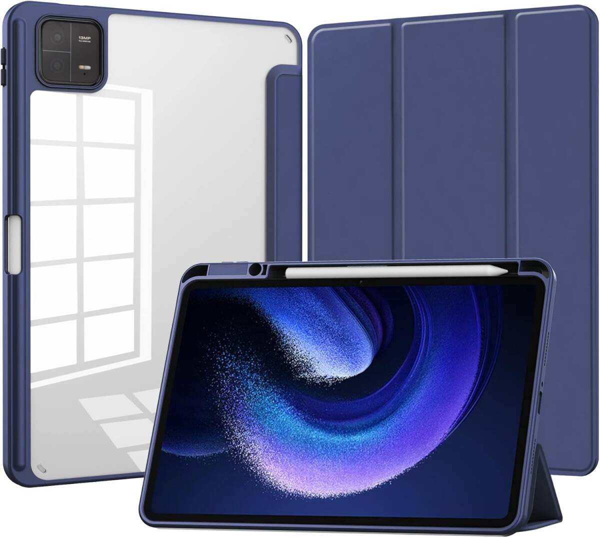 - Xiaomi Mi Pad 6 / Pad 6 Pro ケース 透明 クリア ペンホルダー付 三つ折スタンド オートスリープ機能 手帳型 軽量 薄型 深いブルー