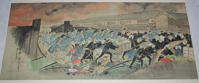 > B57★復刻版*江戸時代の武者定火消じょうびけし幕府直轄の火消し(牢屋火事 罪人解放)台紙付き・版画・印刷物