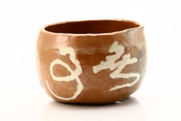 - U50077 上作 楽 赤楽 無事 文字 茶碗 松寿窯 上作 茶道具 宗偏流 山田宗白 /PS