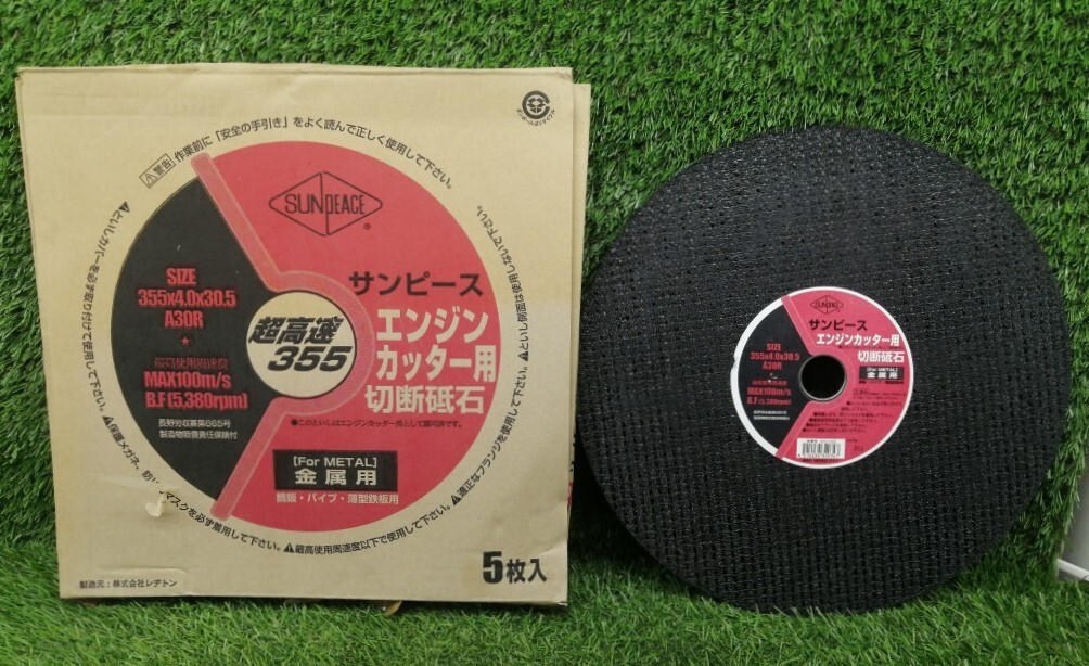 - 未使用品 レヂトン 355mm×4.0mm×30.5mm A30R サンピース エンジンカッター用 切断砥石 金属用 5枚入 【2】
