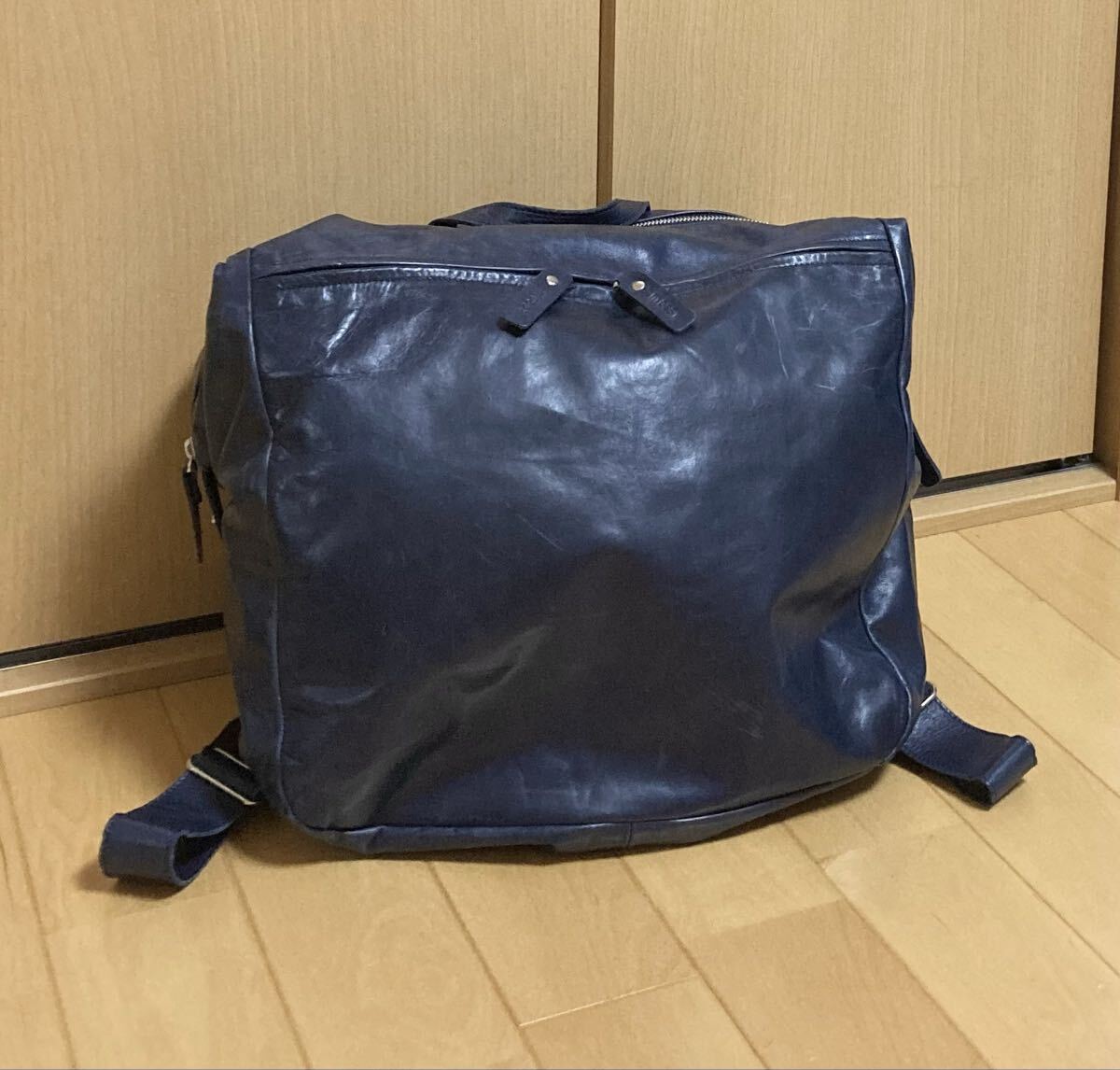 > [m0851] 定価8万 ANILINE FOLDED CORNER BACKPACK フォールデットコーナ アニリンレザーバックパック リュック ネイビー カナダ製