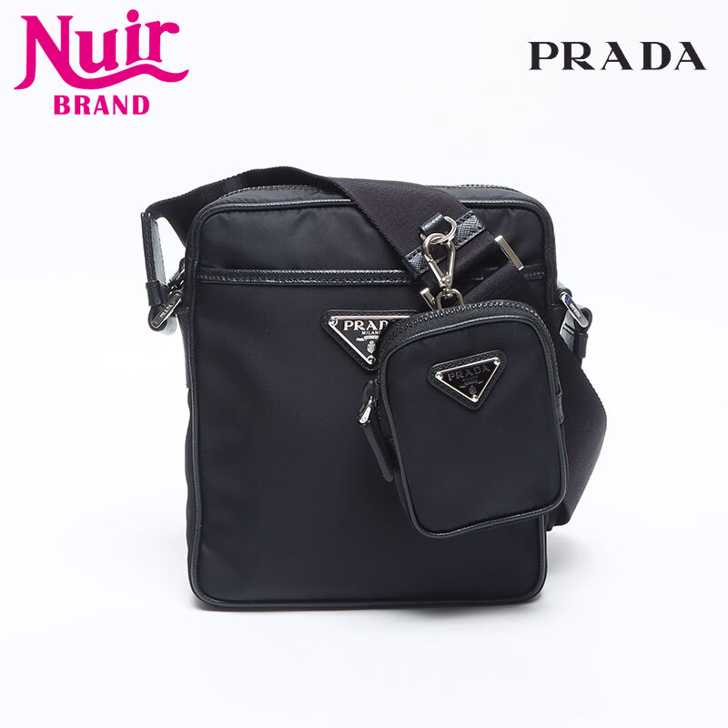 - プラダ PRADA ショルダーバッグ ナイロン サフィアーノレザー ブラック
