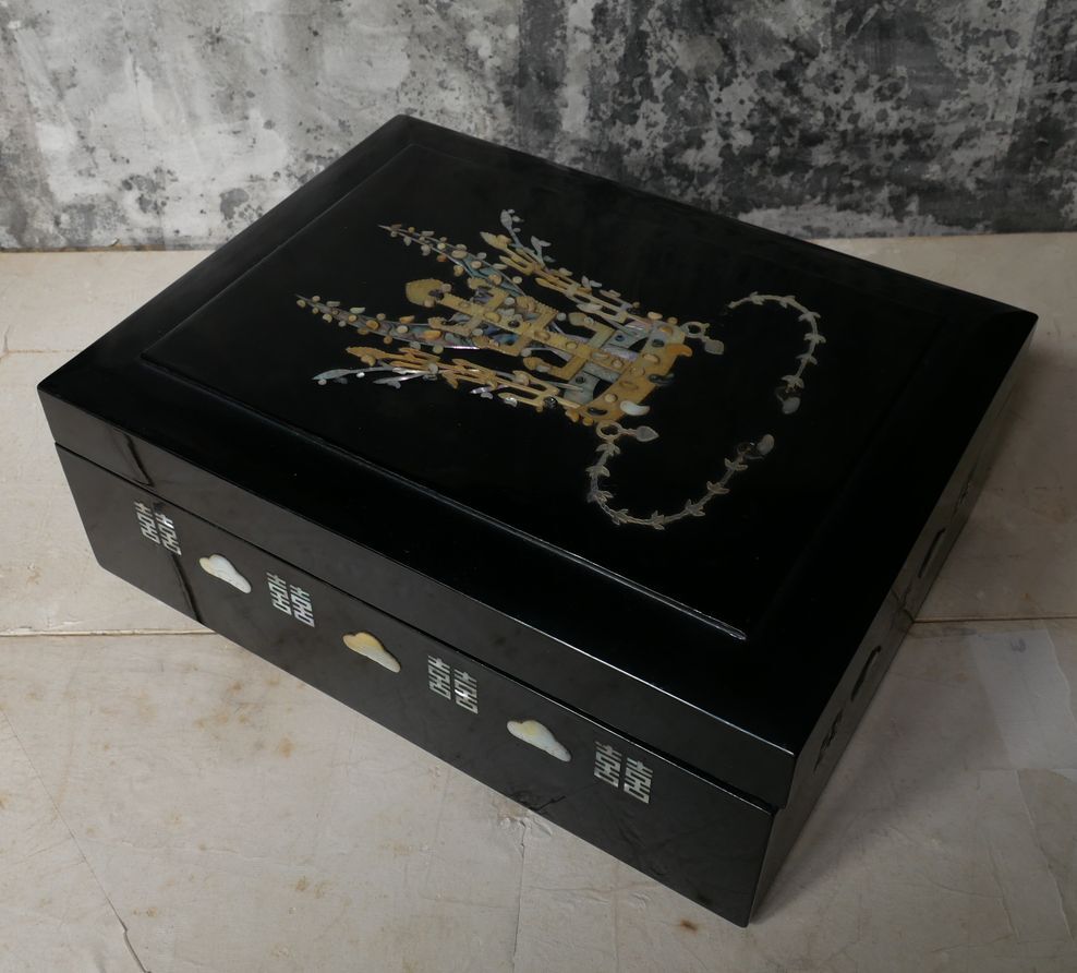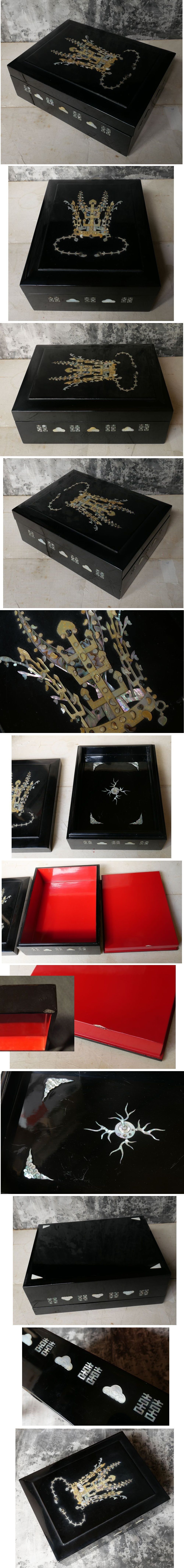 - 朝鮮 韓国 新羅王冠 螺鈿細工 漆器 硯箱 文箱