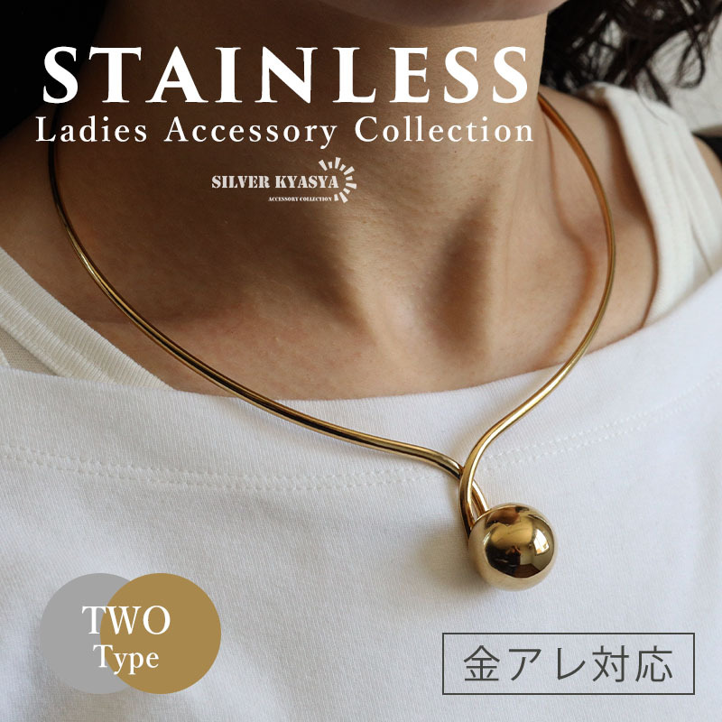 > (ゴールド) チョーカー ネックレス レディース ステンレス メタルチョーカー ボールチョーカー 大ぶり プチプラ 金アレ対応