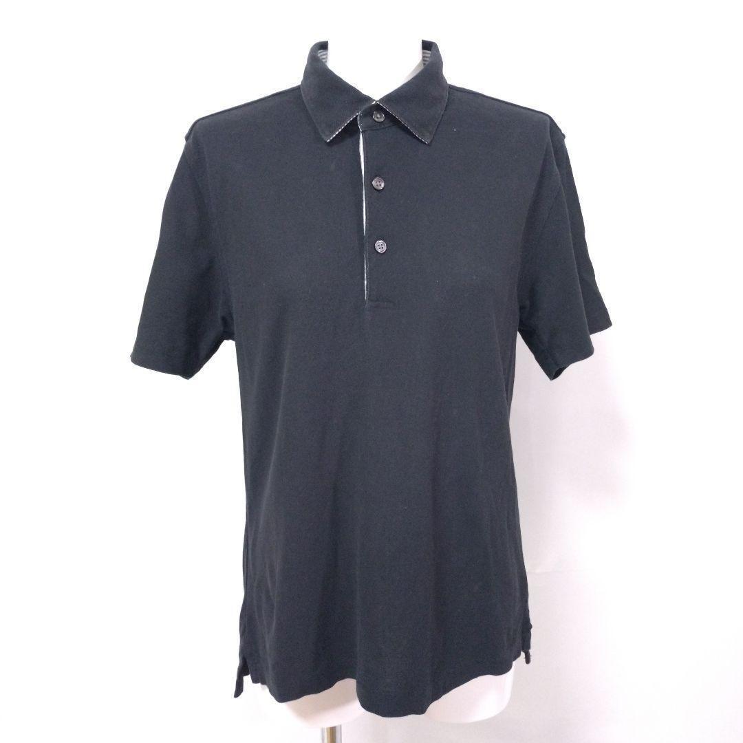 - 無印良品 MUJI 半袖 ポロシャツ 襟ストライプ 綿100 ブラック