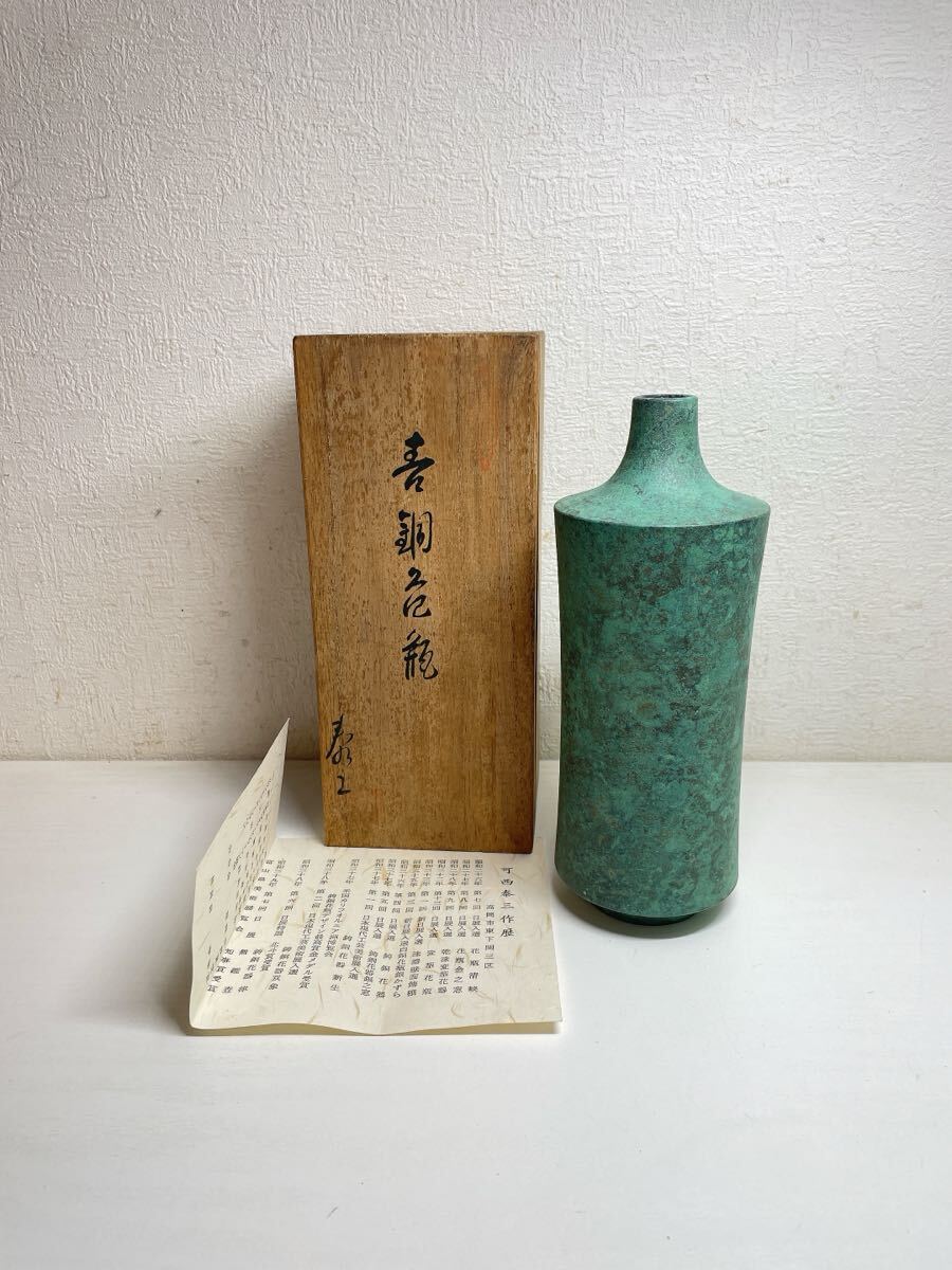 - 2083 青銅花瓶 可西泰三 青銅 一輪挿し 花瓶 花器 現状品