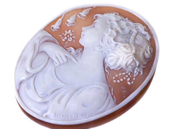 - 【ジュエリー極】作家品サイン有り 素敵な貴婦人の彫刻 高級シェルカメオルース 59.8mm×45.3mm w5706i【送料無料】
