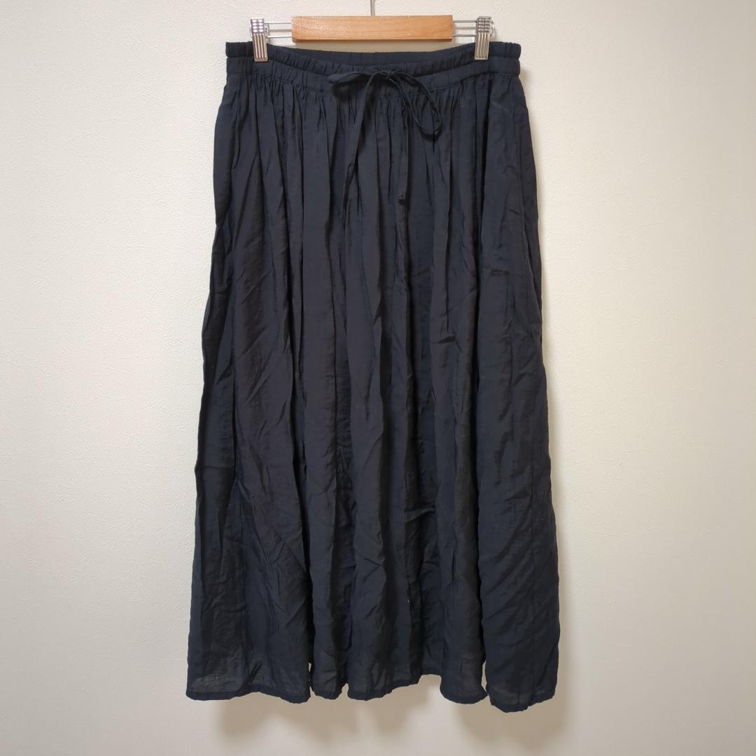 - グローブ(M)ロングプリーツスカート*裏地*透け感*オールシーズン*ネイビー
