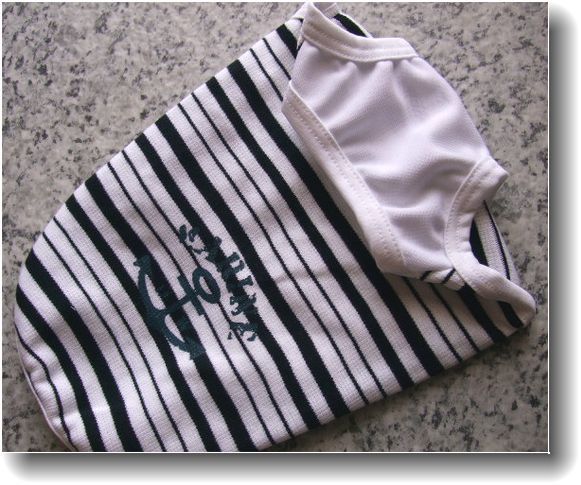 > 犬服W45-3S■3Sサイズ■ベビー・チワワS等小型犬用ランダムボーダー柄マリンTシャツ*白×黒色ハンドメイド