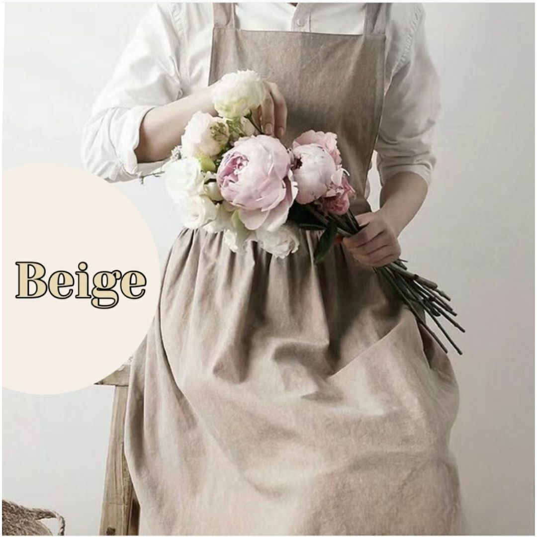 - エプロン ワンピース風 ベージュ キッチン おしゃれ シンプル カフェ かわいい