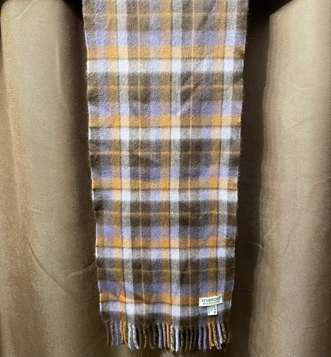 - MADE IN SCOTLAND製 KENSPECKLE チェック柄 ウールアンゴラマフラー ブラウン×パープル マフラー ケンスペックル 英国製 スコットランド製