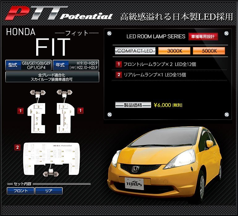 - ◇訳あり◇ ホンダ フィット/GE/GC/GP LED ルームランプ エクセレントホワイト 5000K [OU]