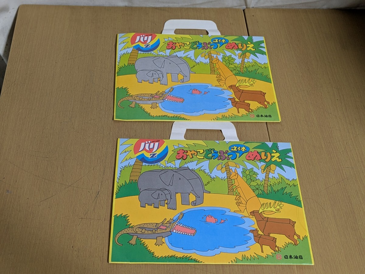 - 未使用/日本油脂 おやこどうぶつ立体ぬりえ 2セット/洗剤 バリZ ノベルティ 当時物 昭和 レトロ 塗り絵 ぬり絵