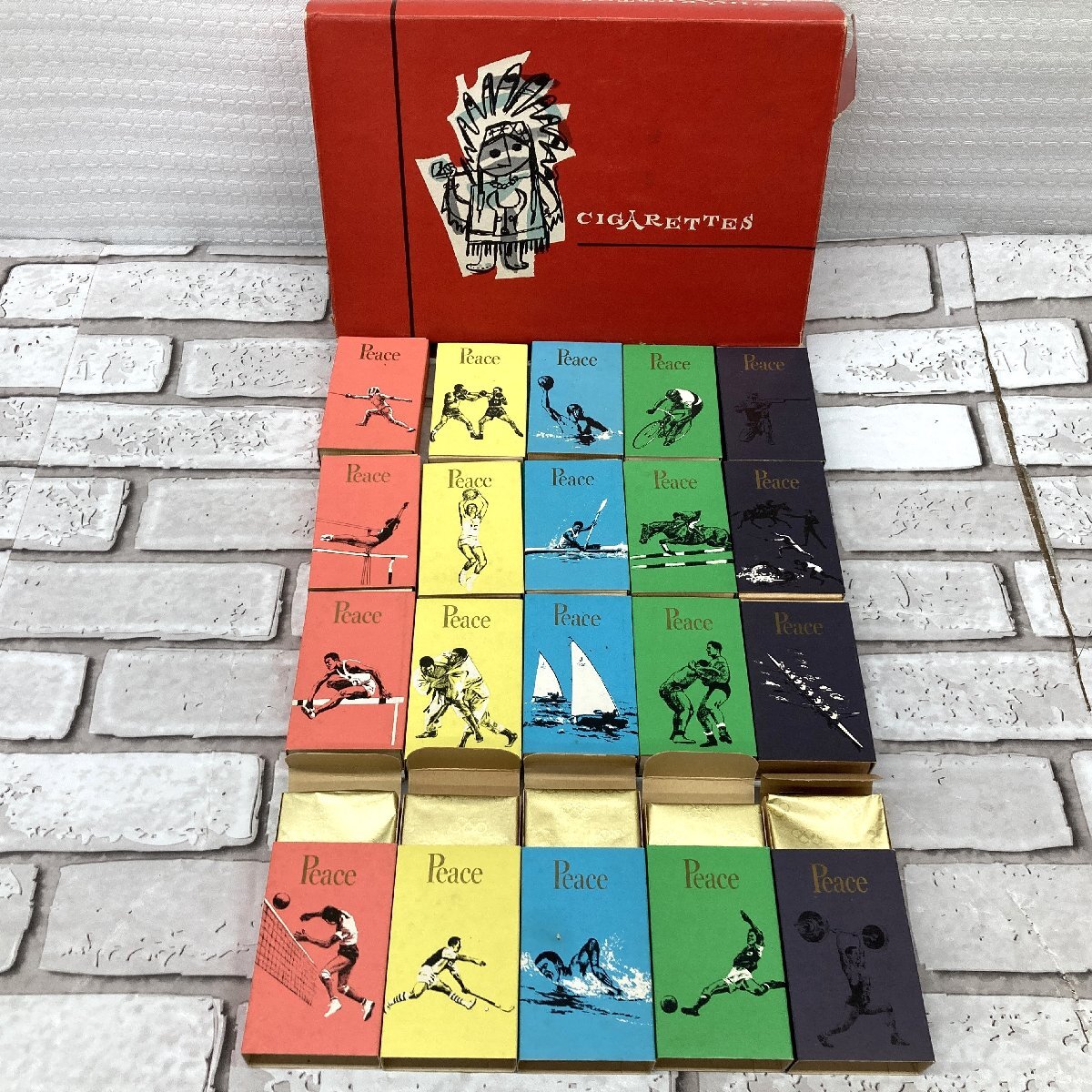 > 第18回 オリンピック東京大会記念 Peace ピース たばこ 空箱(金紙付) 外箱(別物)付き 当時物 現状品 OS9.055 /10