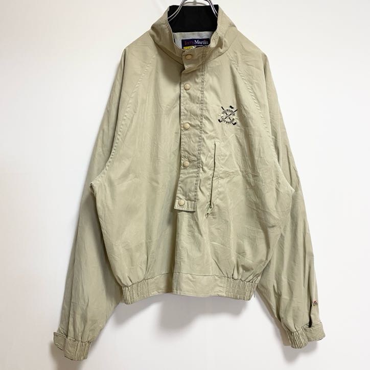 - 古着 used TerryMartin 長袖ハイネックブルゾン ワンポイント刺繍ジャンパー ゴルフ ライトベージュ Mサイズ