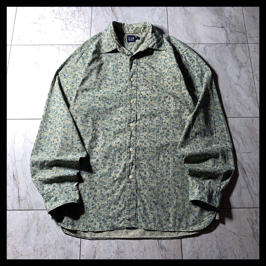 - 00s OLD GAP 総柄 花柄 長袖 シャツ 緑 レギュラーカラー S